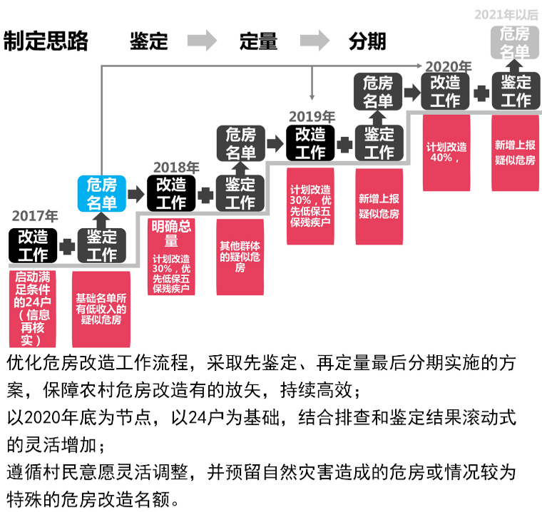 为促进改造工作全面化,规划提出要严格执行农村“一户一宅”政策,在“十三五”期间,针对不符合低收入条件的危房,开展或处置政策研究。