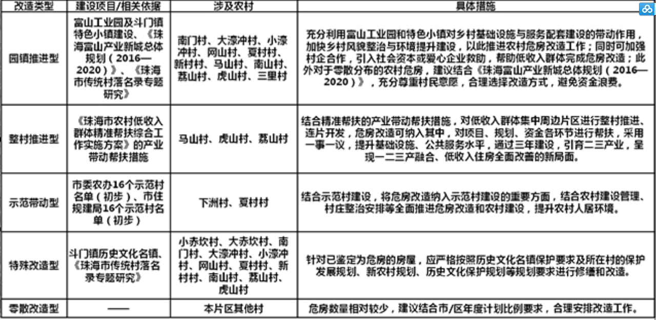此次规范范围包括珠海市122个农业行政村,涉及斗门区、金湾区、高栏港经济区和万山区。其中,各区危房排查和分类登记在册的农村危房,同时满足(1)农村居民属于符合珠海市现行标准的低收入群体,具体包括农村分散供养五保户、低保户、贫困残疾人家庭和其他贫困户;(2)所居住房属于认定为C级或D级住房;(3)所居的房屋是唯一和长期自住的,将列为优先改造对象。