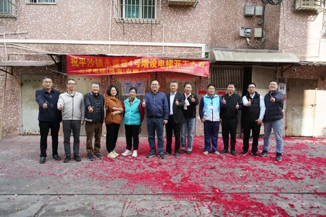 近日,金湾区平沙镇美平村永盛巷四号楼加装电梯正式开工。