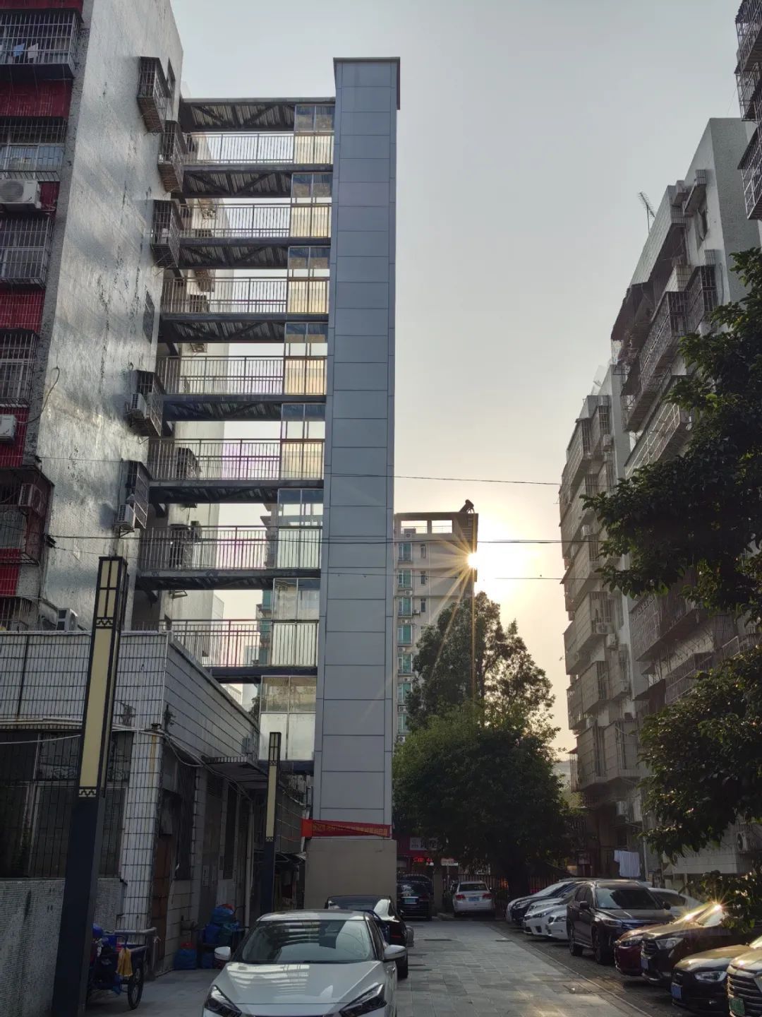 据介绍,夏湾新村33栋是一栋建成于20世纪90年代的9层楼梯房,一层为商户,二至九层一梯七户,共56户。随着楼龄的增长,楼内住户中的老人和小孩逐渐增多,由于没有电梯,每天费力爬楼梯成为楼内老人和小孩出门的“拦路虎”。