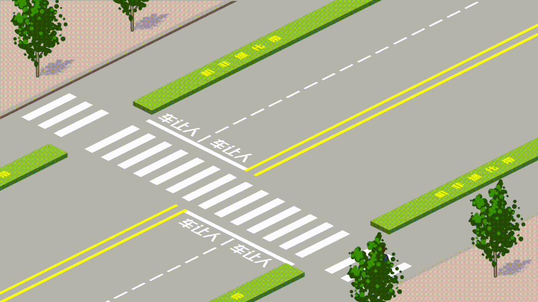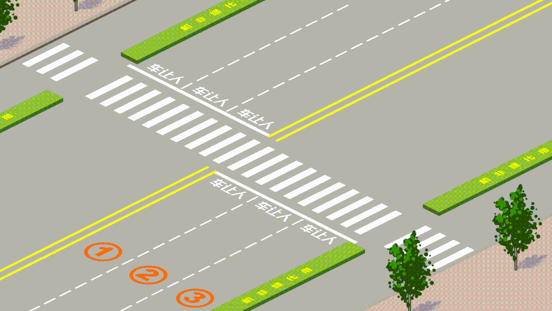 遇行人正在通过人行横道要停车让行▼