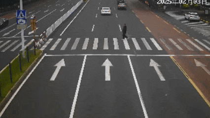 2月3日下午3点55分,一辆粤TD×××61号银色小车来到前山路斑马线时,没有停车礼让正在通行的行人。