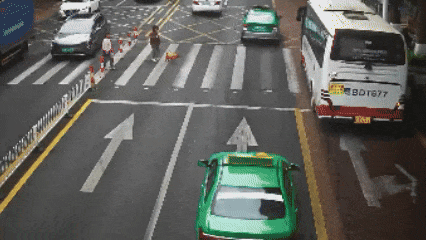 2月1日下午4点23分,一辆粤CD×××11号出租车来到景山路斑马线时,没有停车礼让正在斑马线通行的行人。