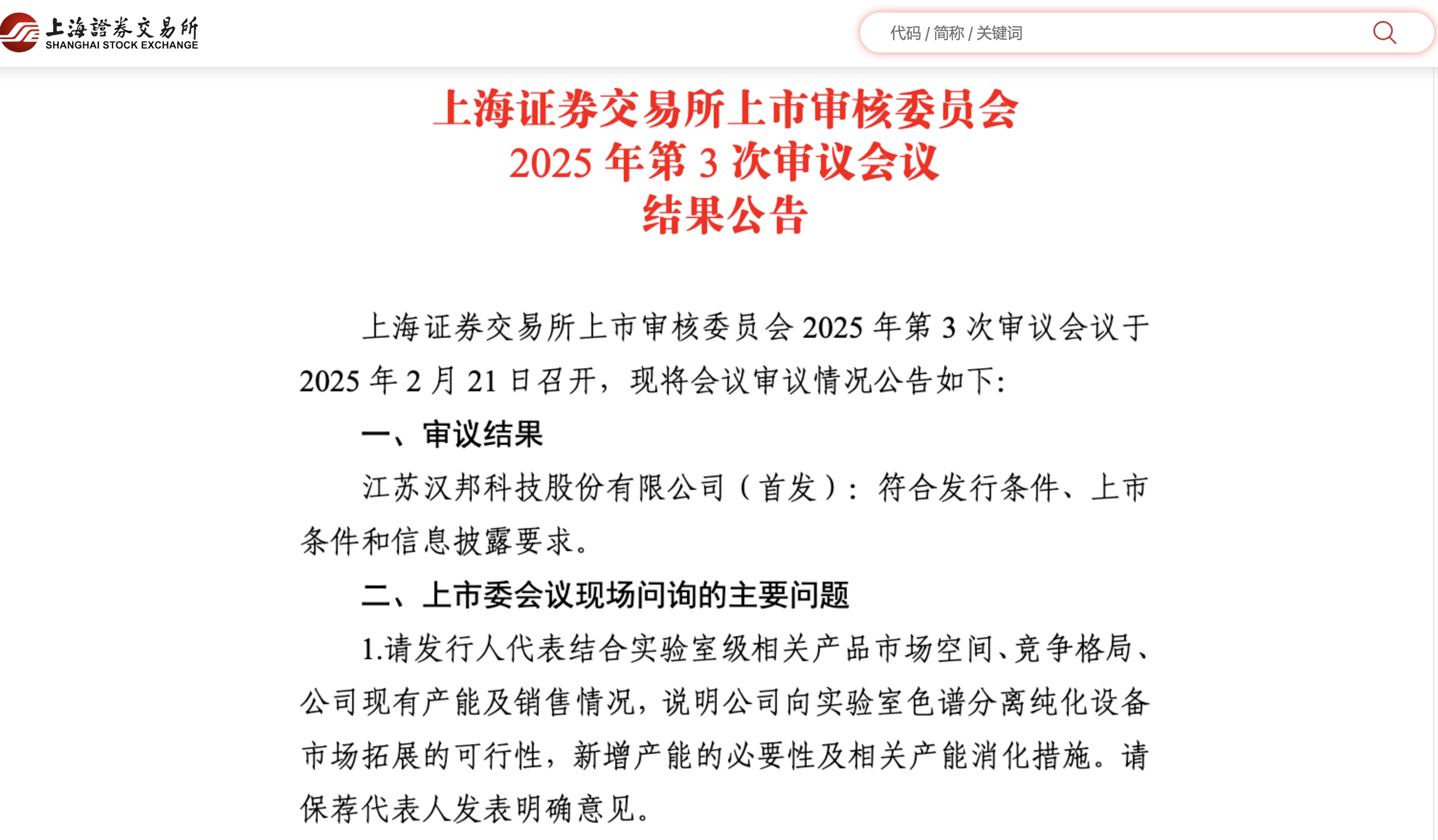 2月21日,上海证券交易所上市审核委员会发布公告,华发集团投资企业江苏汉邦科技股份有限公司(以下简称“汉邦科技”)科创板IPO申请获通过,成为蛇年科创板首家IPO过会企业。