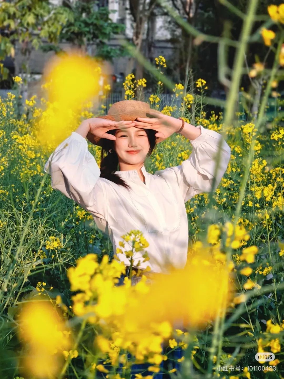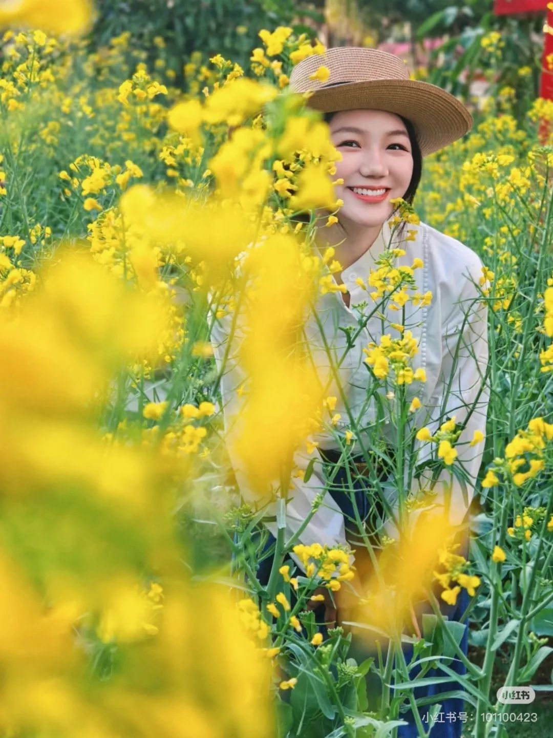 在田间小路、花海中