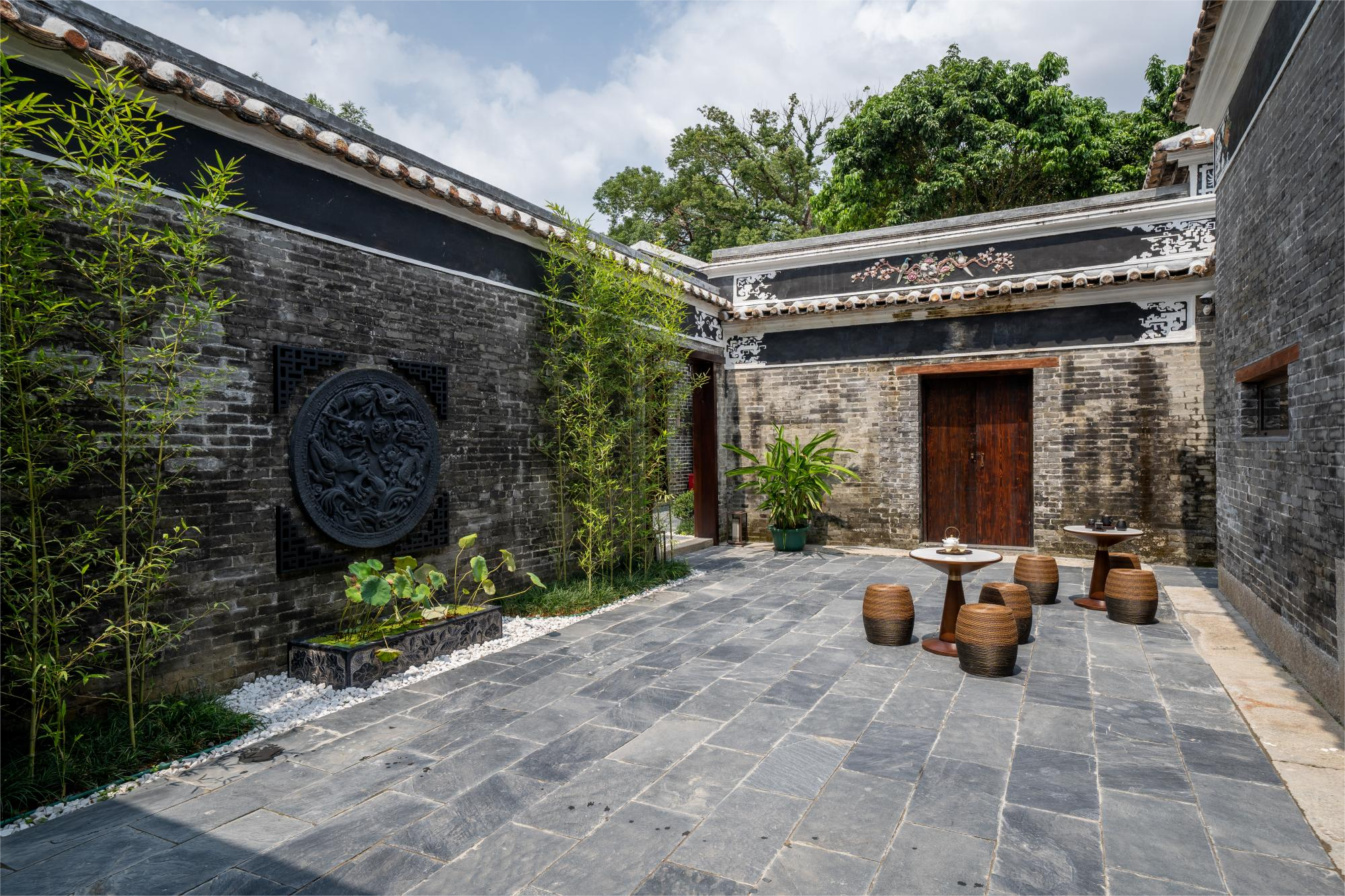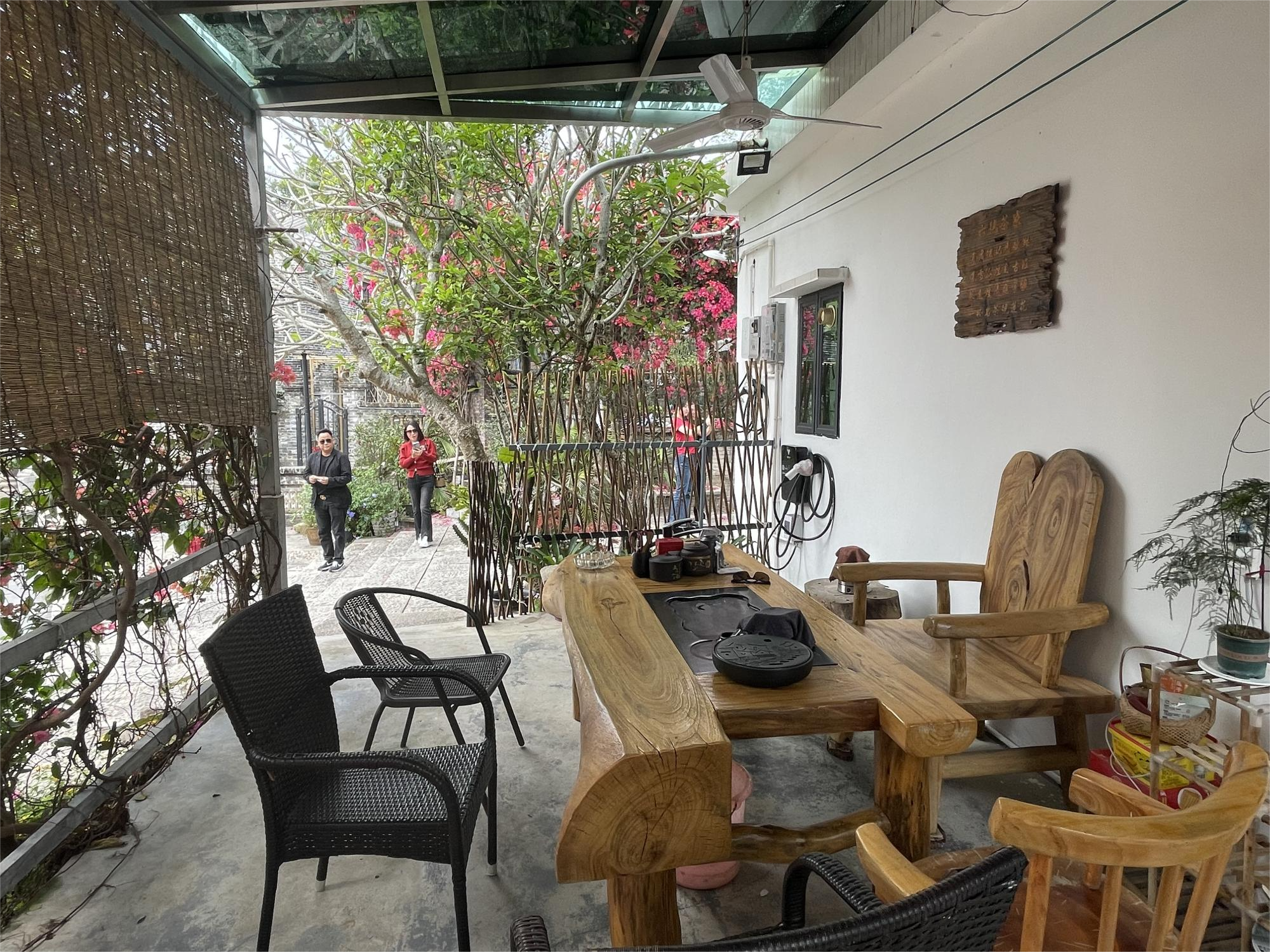 踏入“花筑·隐庐”民宿庭院,美景如画,仿佛能让人忘却忧愁,沉浸于历史沉淀的悠然氛围。青砖瓦房搭配碧绿窗棂,绿植鲜花点缀其间,四季如春。庭院女主人表示,夫妻偶然邂逅此房,便决定将其改造成兼具中式韵味与现代感的民宿。民宿有13间精心把关的客房,以古式红木家具、中国字画彰显岭南文化韵味,窗外翠竹庭院风光旖旎,还设有茶室等区域供客人享受静谧。
