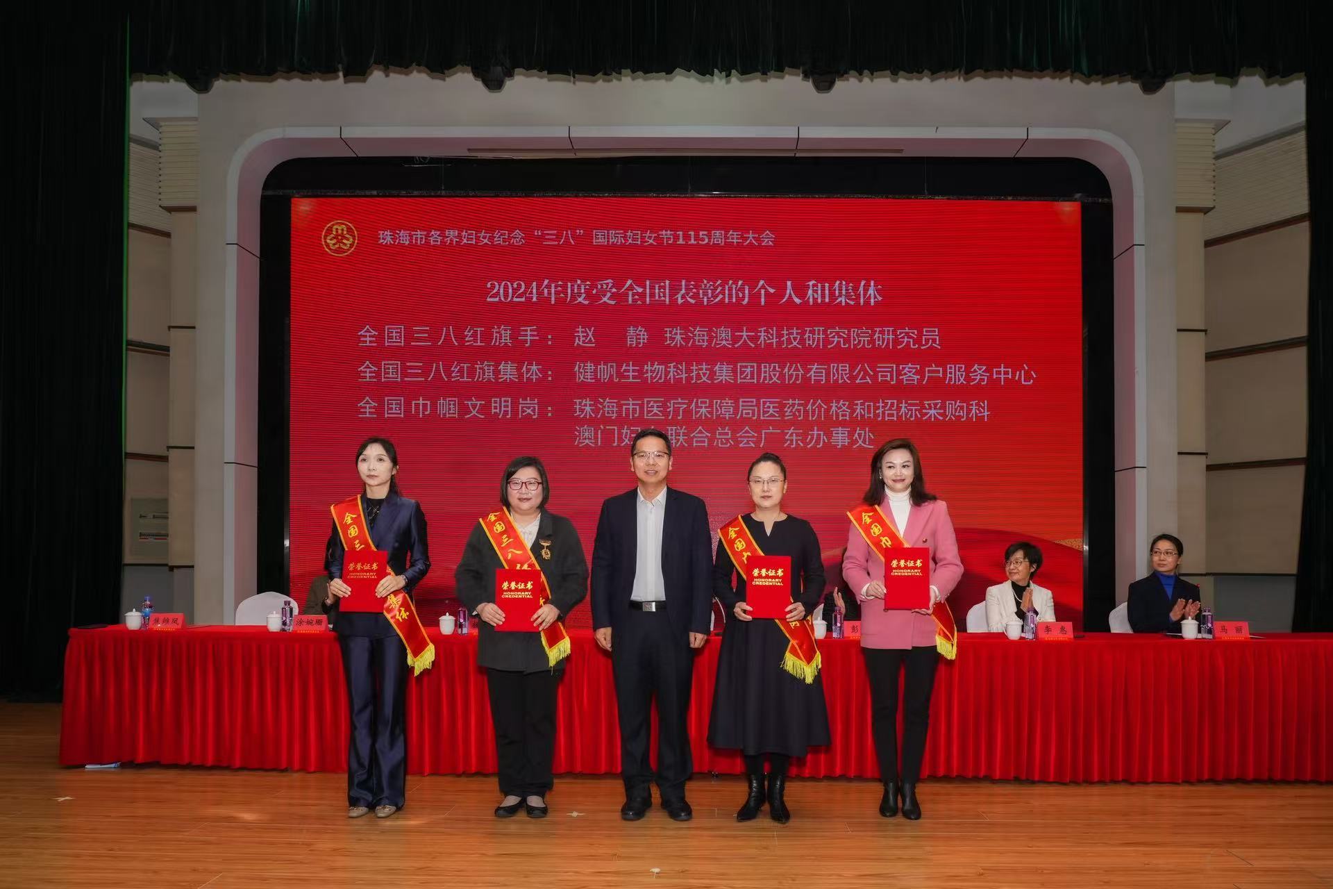 澳门妇女联合总会广东办事处与珠海市医疗保障局医药价格和招标采购科荣获“全国巾帼文明岗”称号。大会现场,她们也分享了获奖的真切感受。