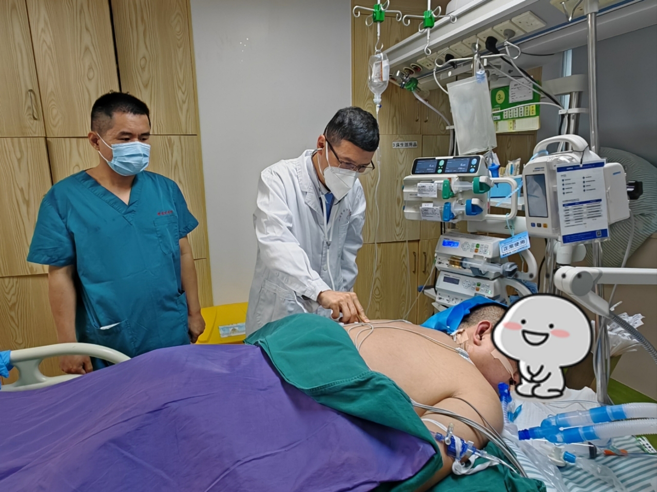 在ICU的20个日夜,团队精准施策:针对重症肺炎实施“肺保护策略”,俯卧位通气、气道保护、支纤镜肺泡灌洗、个性化抗感染、抗病毒等治疗为患者争取生机;连续肾脏替代治疗(CRRT)清除炎症因子,守护肾脏功能;多次进行多学科会诊,动态调整抗感染、营养支持、生命支持方案。