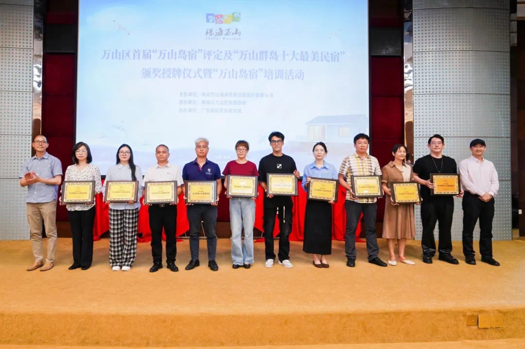 5月15日,珠海万山海洋开发试验区首届 “万山岛宿”评定及“万山群岛十大最美民宿”评选活动授牌仪式在桂山岛举行。半山石筑精品民宿等15家民宿荣获“万山岛宿”称号,九洲蓝色海岸民宿等10家民宿获评“万山群岛十大最美民宿”,成为海岛民宿新标杆。