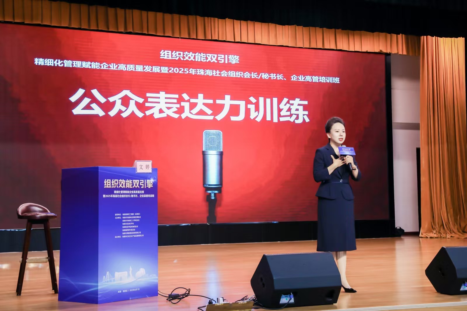 珠海市社会组织总会妇联副主席、市沟通表达技能发展协会会长文婷表示,高质量发展,核心在“质”,关键在“人”。“我们举办这次培训活动的目的就是深入贯彻落实国家关于推动高质量发展的战略部署,希望能够通过提高我们社会组织对精细化管理的认识、提升沟通表达能力,带动会员企业进一步提高管理水平,培养员工的责任感和自我管理能力,形成高效的团队协作和良好的企业文化。”