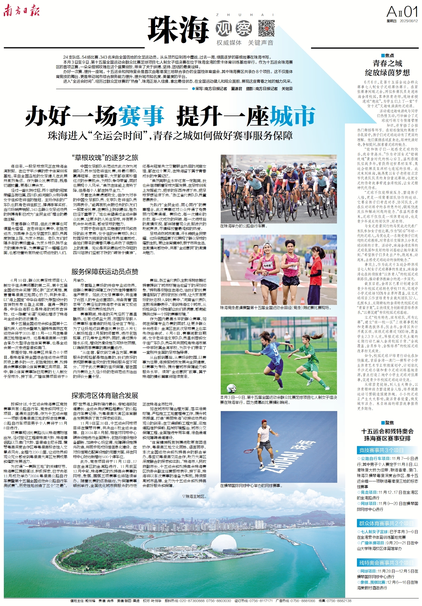 从台前到幕后,从赛场到校园,以赛事为纽带,连接起城市发展与全民健康,以赛事为考场,提升着城市保障能力和服务水平。续写“全运惠民”故事,属于珠海的精彩篇章将陆续有来。