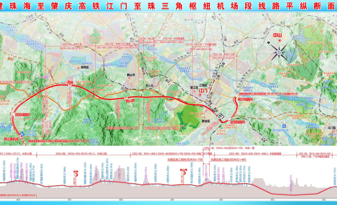 ▲珠肇高铁江门至珠三角枢纽机场段线路平纵断面图