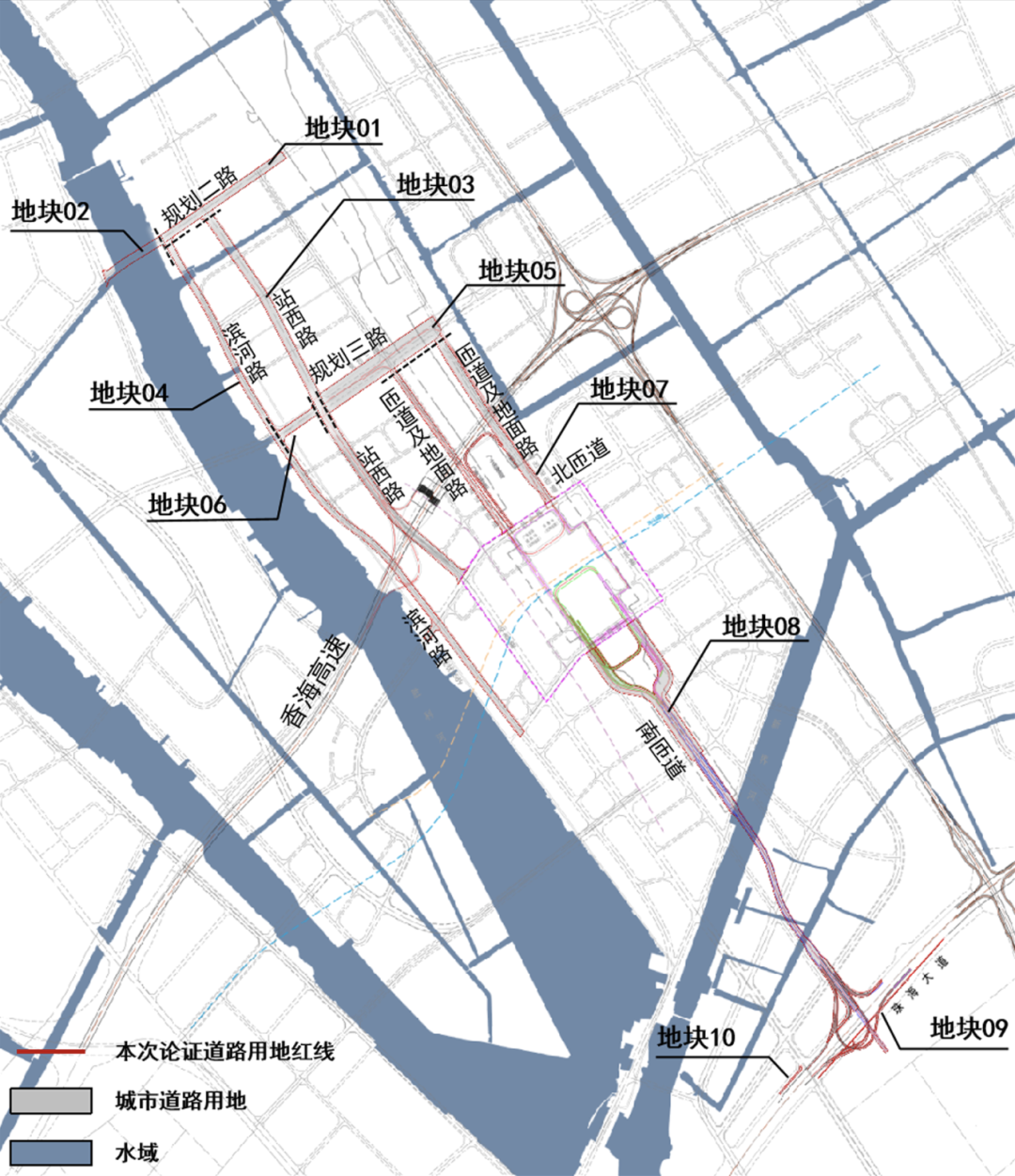 《公示》显示,此次规划条件论证的项目位于珠海市鹤洲片区胜利河东侧、珠海大道北侧,用地范围包含珠海中心站(鹤洲)枢纽站城一体工程的南北进站匝道,以及滨河路、站西路、规划二路、规划三路,论证总用地面积约67.49公顷,其中北进站匝道涉及占用一级工业用地控制线(增量)约2.32公顷。