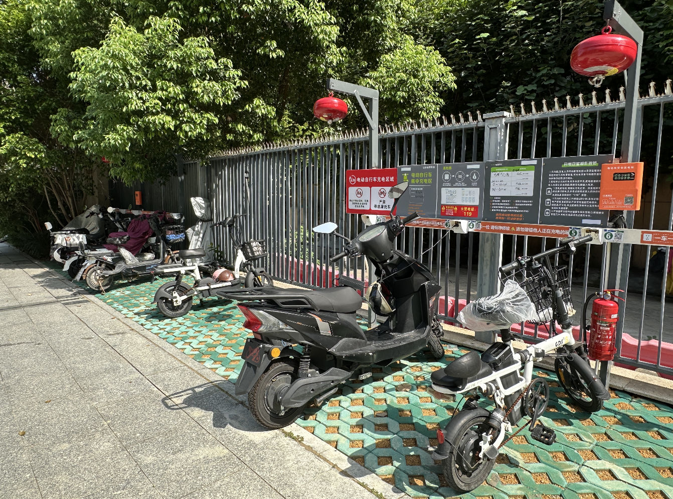荔枝湾小区标准化电动自行车集中停放点。