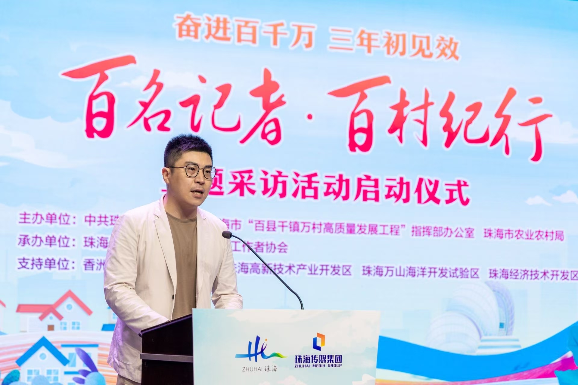为深入落实省委“1310”具体部署,实施“媒体+”行动助力“百千万工程”,7月16日,珠海启动“百名记者·百村纪行”主题采访活动。根据部署,珠海市、区两级近百名记者将肩负使命、奔赴百村,以脚步丈量热土变迁,以镜头记录时代芳华,以笔墨书写振兴史诗,用全媒体视角展现珠海推进“百千万工程”的创新实践。