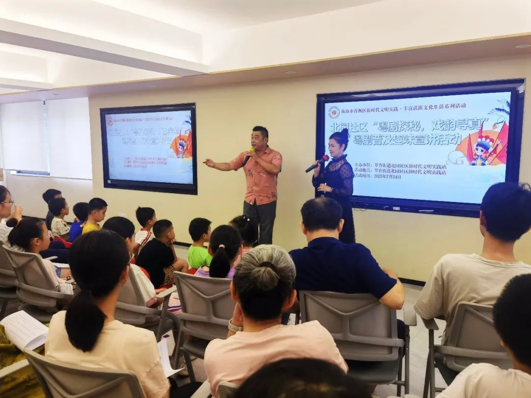 活动中,实践团成员化身“文化推广使”,通过服饰、妆容展示和解说,生动呈现粤剧艺术,并邀请北园明珠粤剧社带来经典选段《夜战马超》《花好月圆》,赢得阵阵掌声。现场还开展了“粤韵知识大比拼”“粤剧旋律猜猜猜”等互动,孩子们在欢乐中加深了对传统文化的理解。