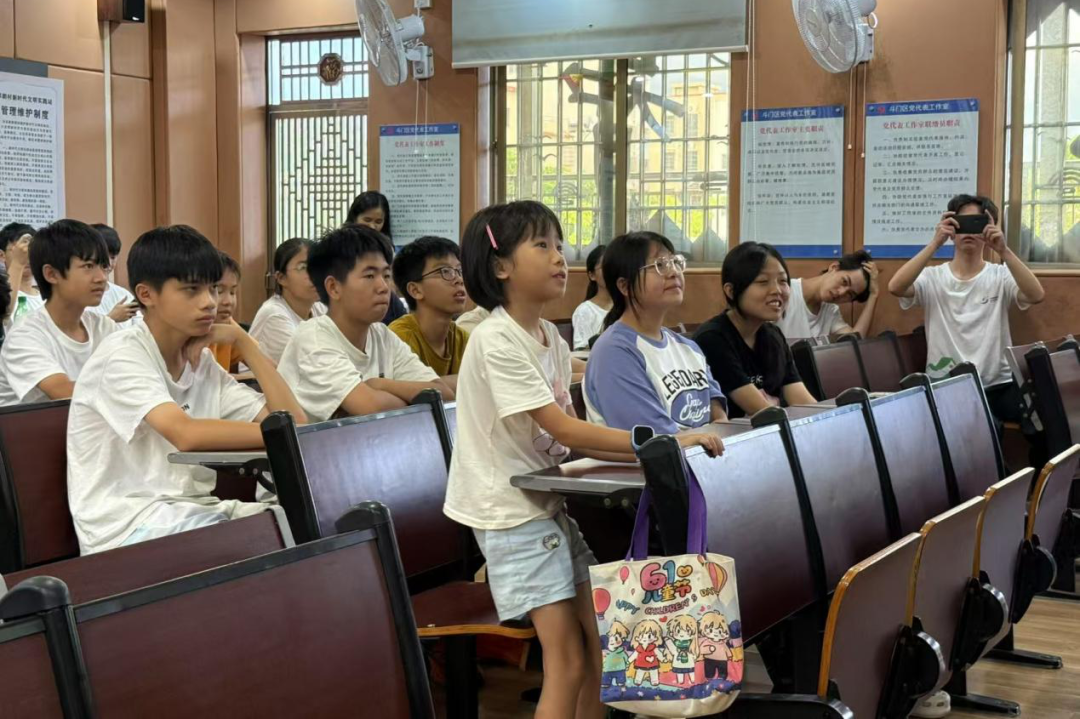 湛江幼儿师范专科学校青年突击队携手银桦社区新时代文明实践站,开展非遗美育夏令营。