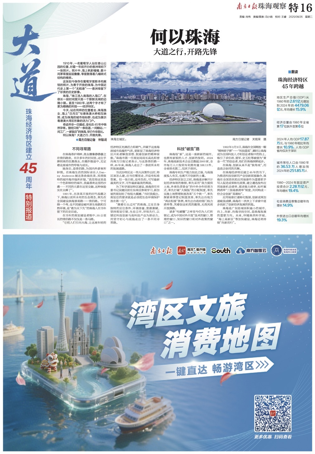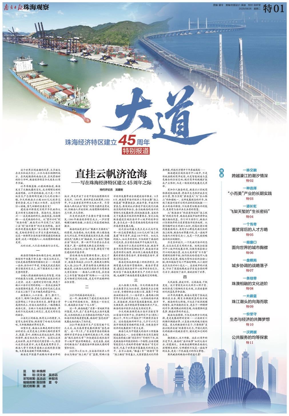 在新的时代方位下,经济特区如何重整行装再闯关,继续为中国探路,与世界共舞?今天,南方日报、南方+推出《大道——珠海经济特区建立45周年》特别报道,致敬激情燃烧的45年,续写更多春天的故事。