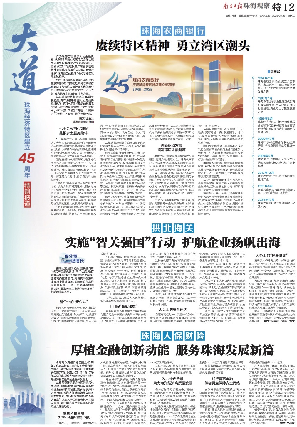 2025年是珠海经济特区建立45周年。从诞生的那一刻起,经济特区便肩负起“杀出一条血路”、为改革开放破冰、为中国特色社会主义探路的国家使命,在体制改革中发挥了“试验田”作用,在对外开放中发挥了重要“窗口”作用。