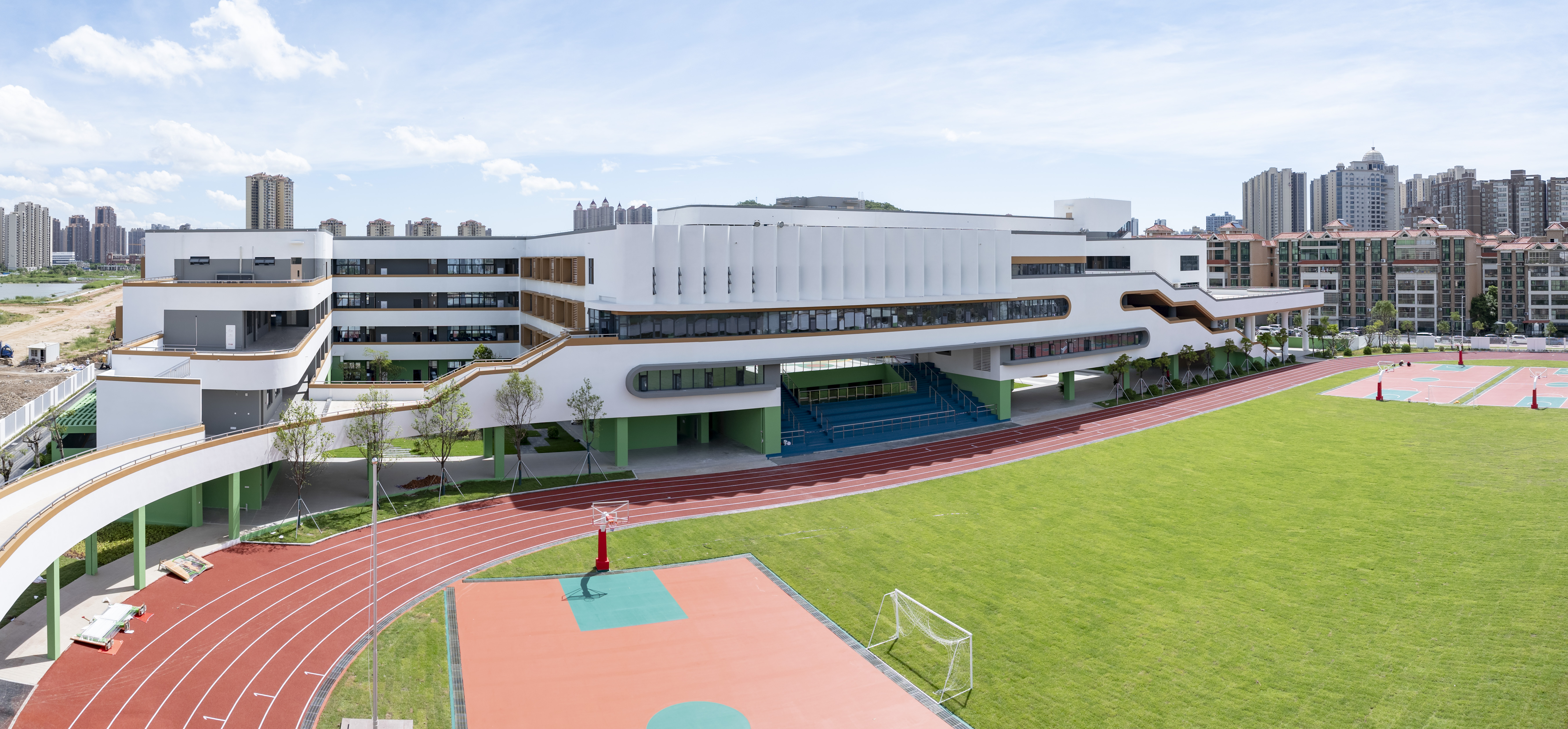 珠海九中是新香洲片区的一所热门名校,因学区范围内户籍新生人数过多,连续多年实施户籍生分流举措。两年前该校启动改扩建工程,扩建运动场,新建两层综合教室,并增设地下交通分流中心、阅览室、多功能厅、报告厅等。