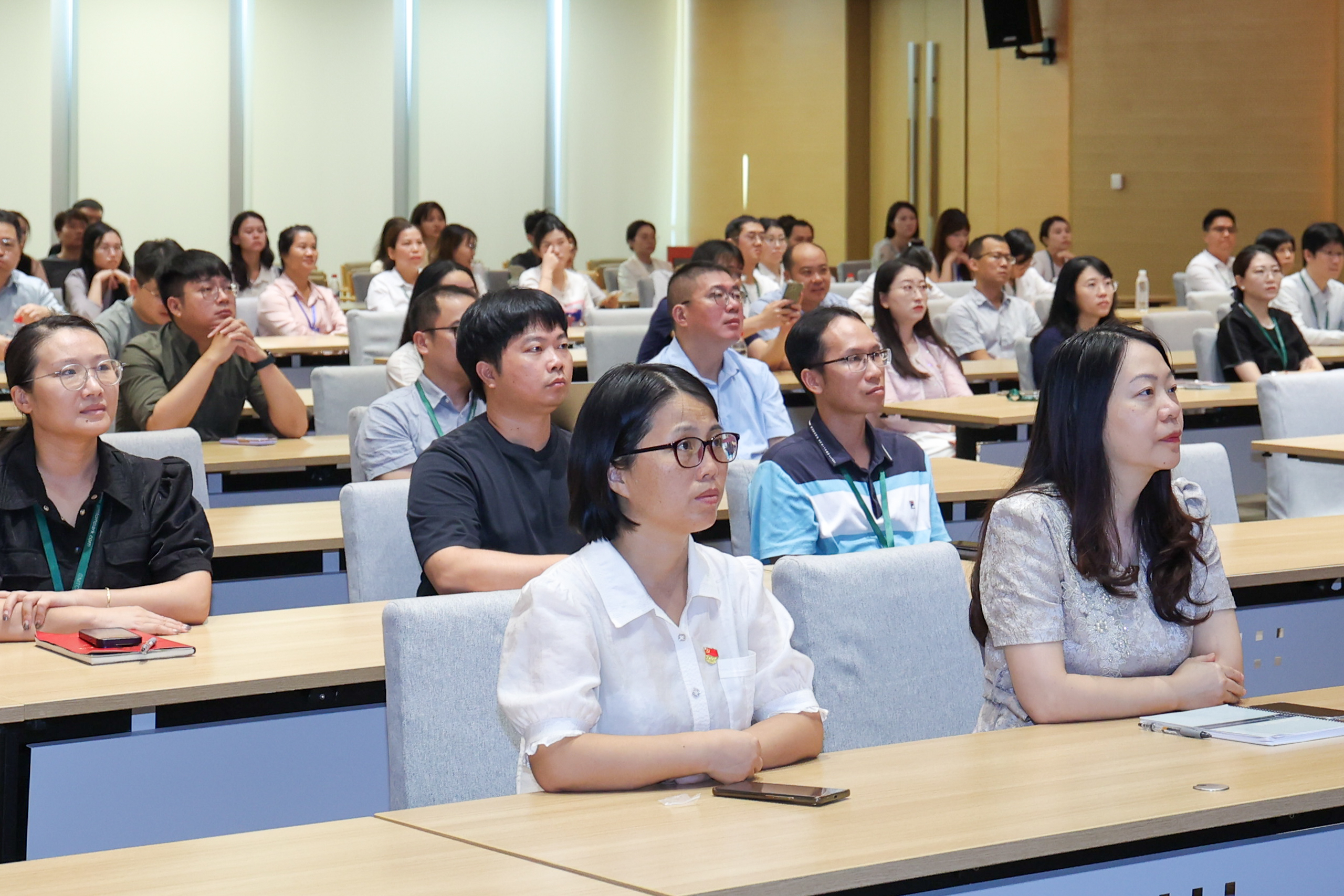 在中影国际影城(横琴励骏庞都店)4号影厅,合作区各机关单位代表、产业园区企业负责人、澳门创业青年代表、澳门协会组织代表、澳门高校学生,以及合作区居民和中山等周边地区居民等200余人参加集中收看。大家感受着人民军队的雄威,赞叹着武器装备的精良,现场不时传来阵阵掌声。