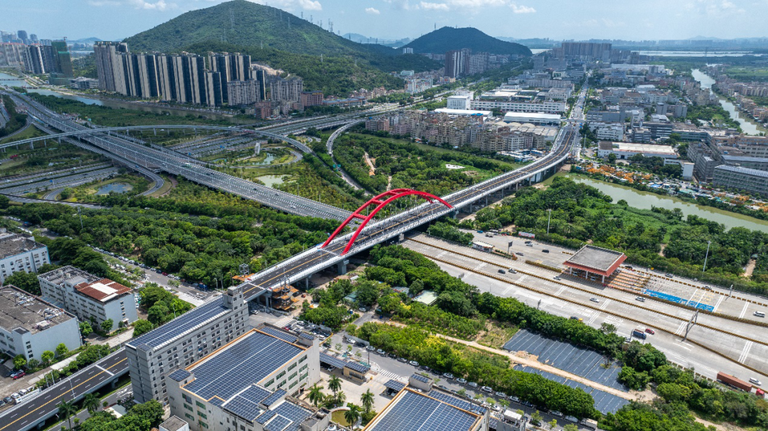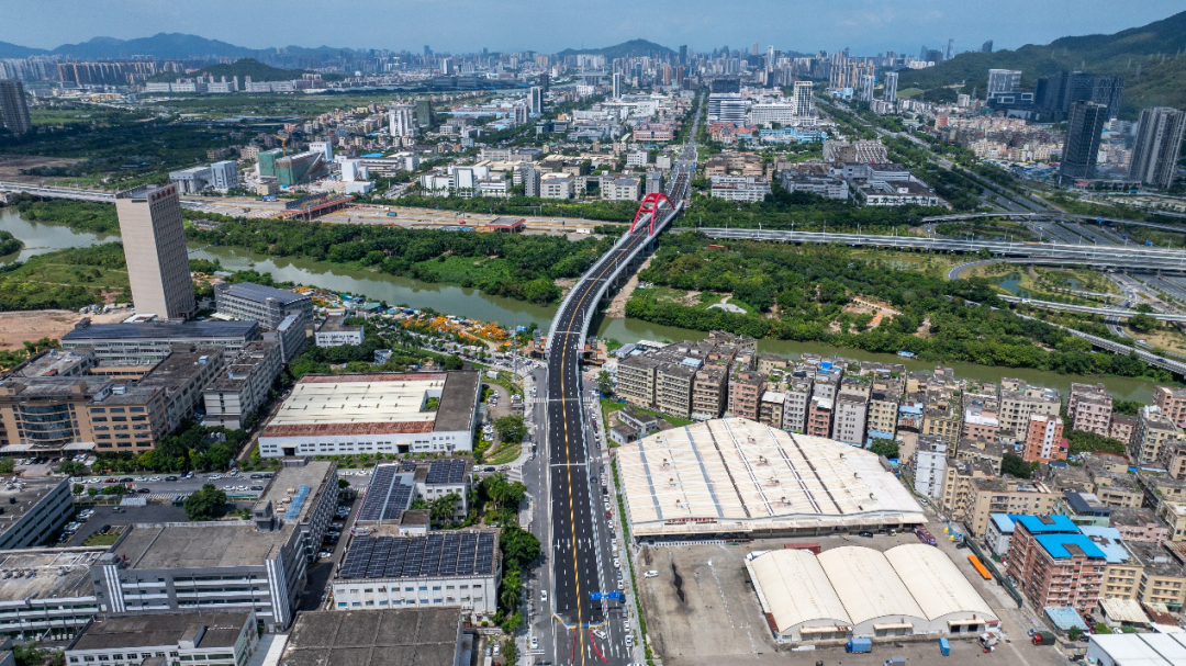 这座桥横跨珠三角环线高速与洪湾涌,结束了南屏科技工业园东西片区的“分隔”历史,实现立体通行。原先从屏北一路到屏北三路需绕行20分钟以上,如今最快两三分钟即可直达,通行效率大幅提升。