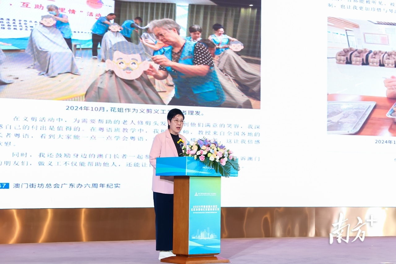 随后,澳门街坊总会北区办事处分享社区精细化管理经验,展现“澳门经验”的落地实践;横琴粤澳深度合作区荷塘社区分享了《从“任务驱动”到“价值引领”—荷塘社区治理的实践探索》,介绍荷塘社区探索因地制宜,盘活社区资源,推动社区治理创新的做法;澳门街坊会联合总会广东办事处以《以赋能促发展》为题,介绍了荷塘服务点的志愿服务品牌建设经验,生动展示了“以服务促成长 以实践育新人”的工作理念。