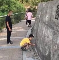 与此同时,现场不时有游客驻足围观,甚至有家长默许孩子在墙面写写画面。