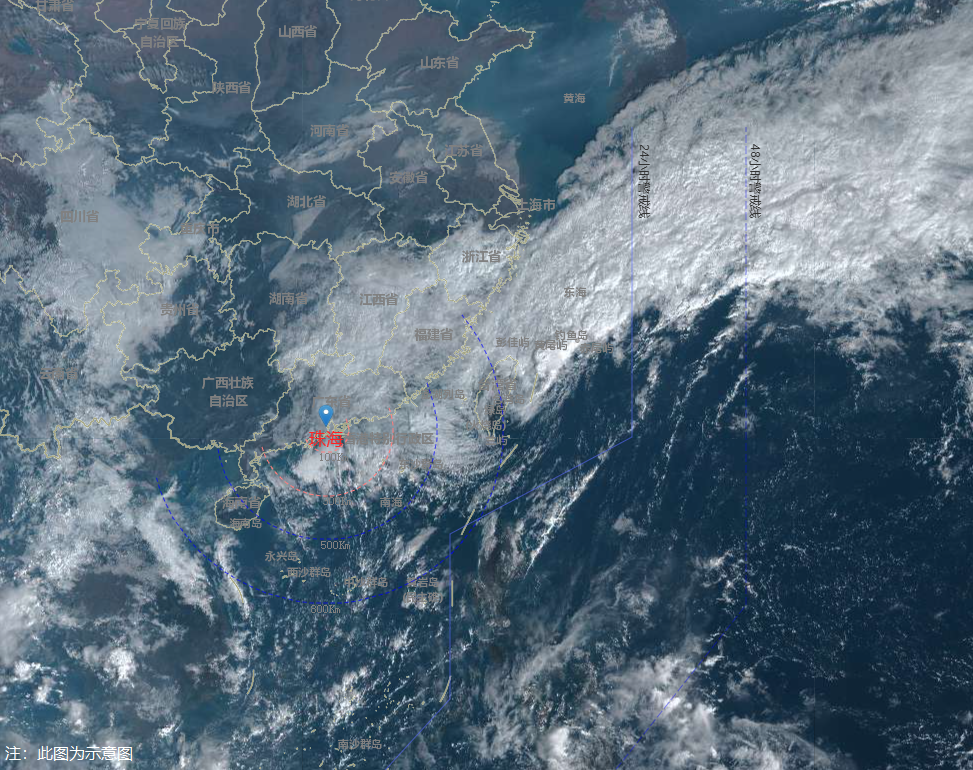 受冷空气影响,台风“凤凰”13日上午在台湾以东洋面变性为温带气旋,中央气象台08时对其停止编号。从卫星云图可以看到,台风“凤凰”已化为一条狭长的锋面云系,珠海上空同样也有一些云系覆盖。