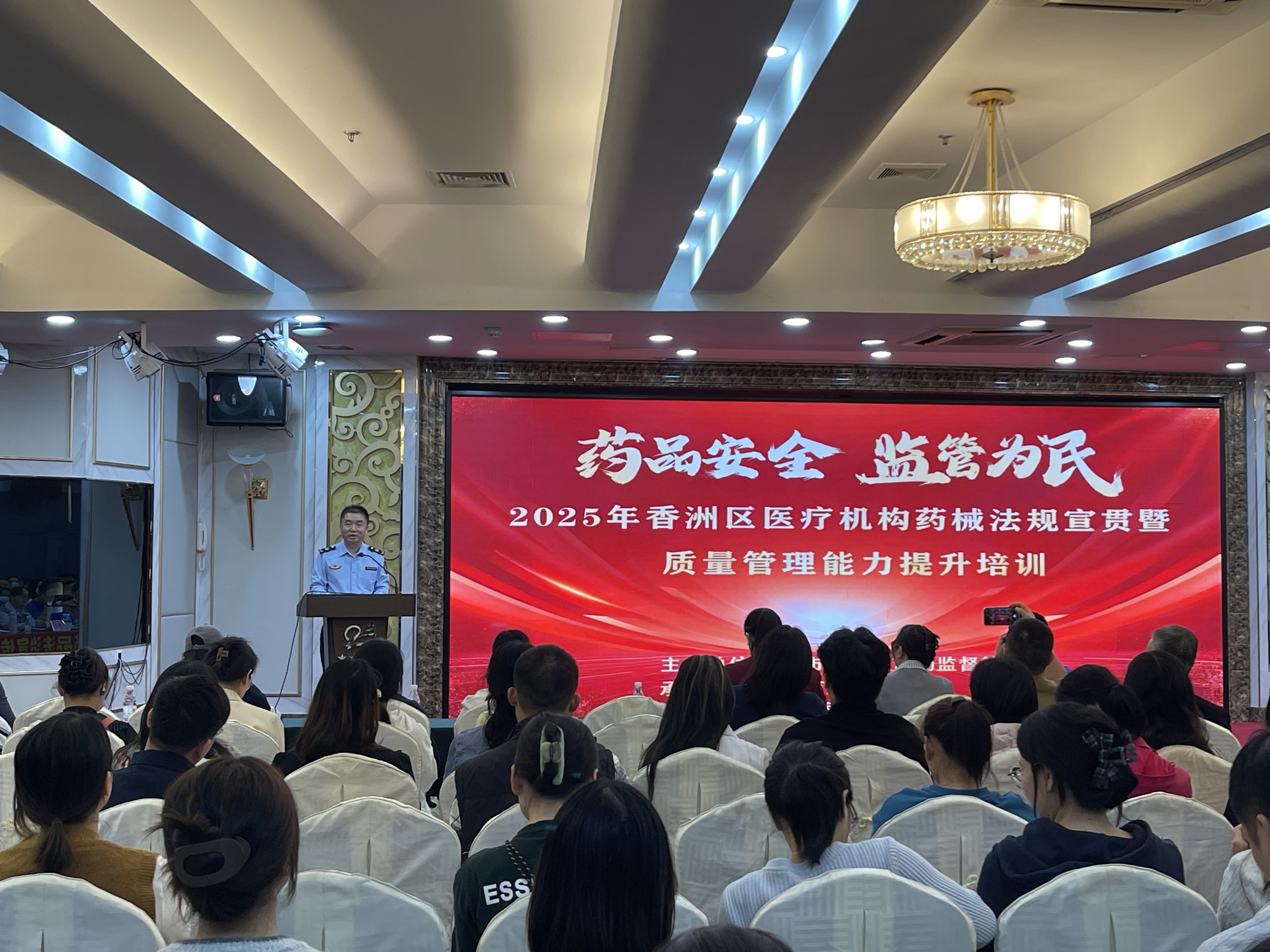 为进一步规范医疗机构药品、医疗器械使用环节管理,强化医疗机构主体责任意识,保障人民群众用药用械安全,近日,珠海市香洲区市场监管局组织开展2025年香洲区医疗机构药械法规宣贯暨质量管理能力提升培训,辖区医疗机构药械质量管理(不良反应/事件监测)负责人、市场监管人员共360余人参加。