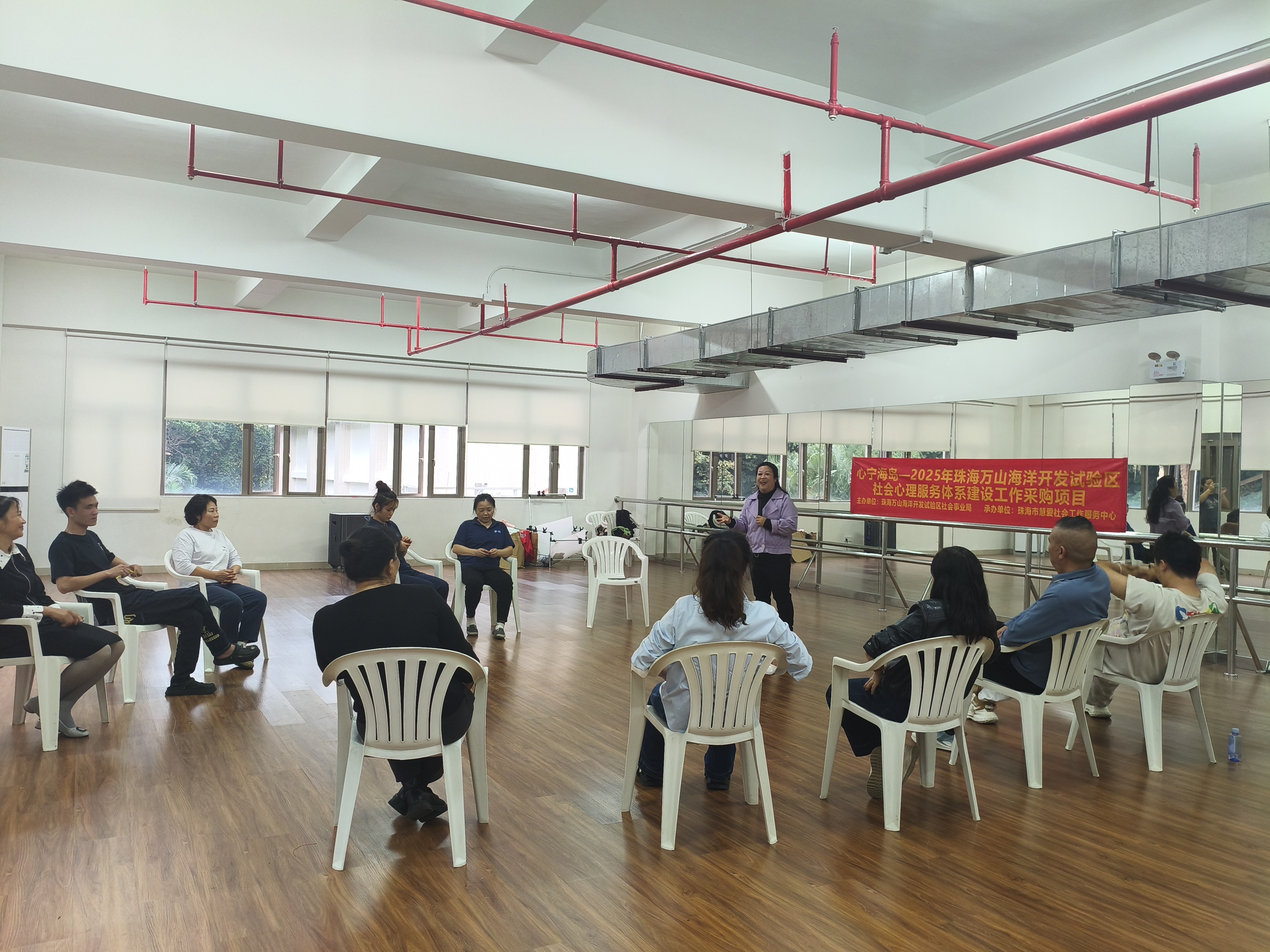 本次沙龙邀请珠海市慧爱社会工作服务中心理事长、国家二级心理咨询师林春爱现场授课。针对海岛旅游业工作人员需长期应对游客多元需求、轮班作息不规律、台风等特殊天气应急值守压力等特点,授课人设计了一系列兼具专业性与趣味性的实践环节。