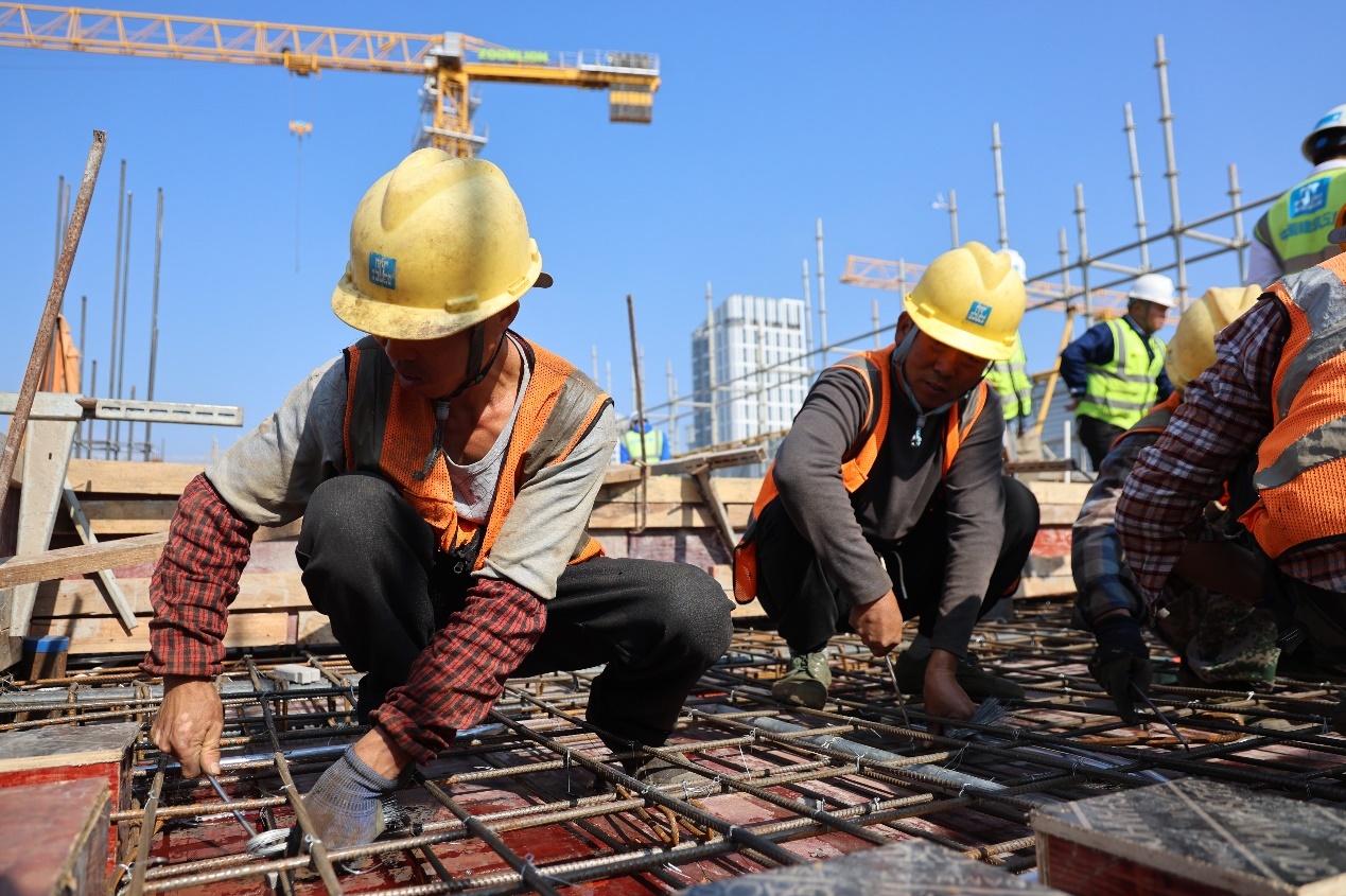 施工现场,建设者们正辛勤劳作,助力项目顺利封顶。