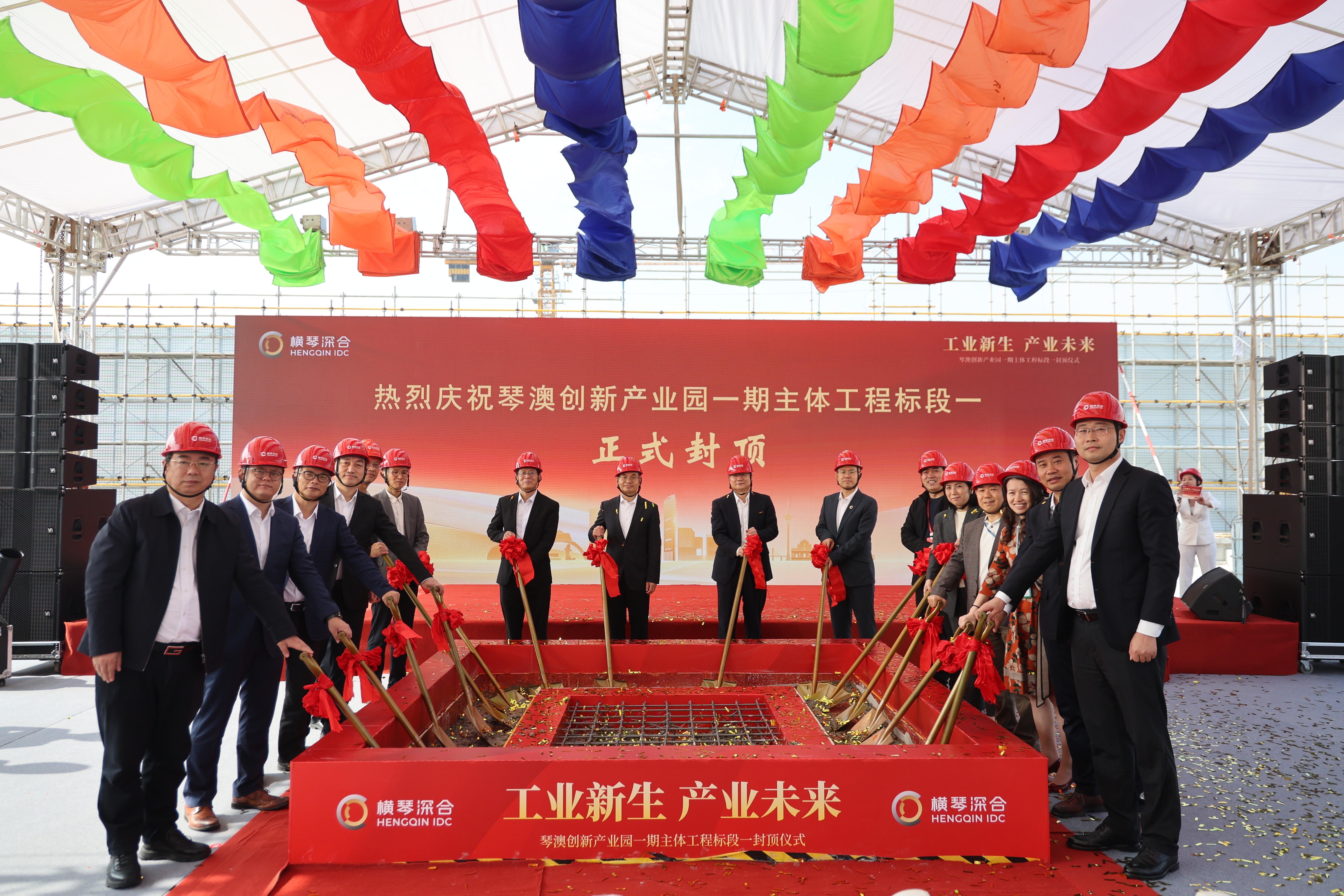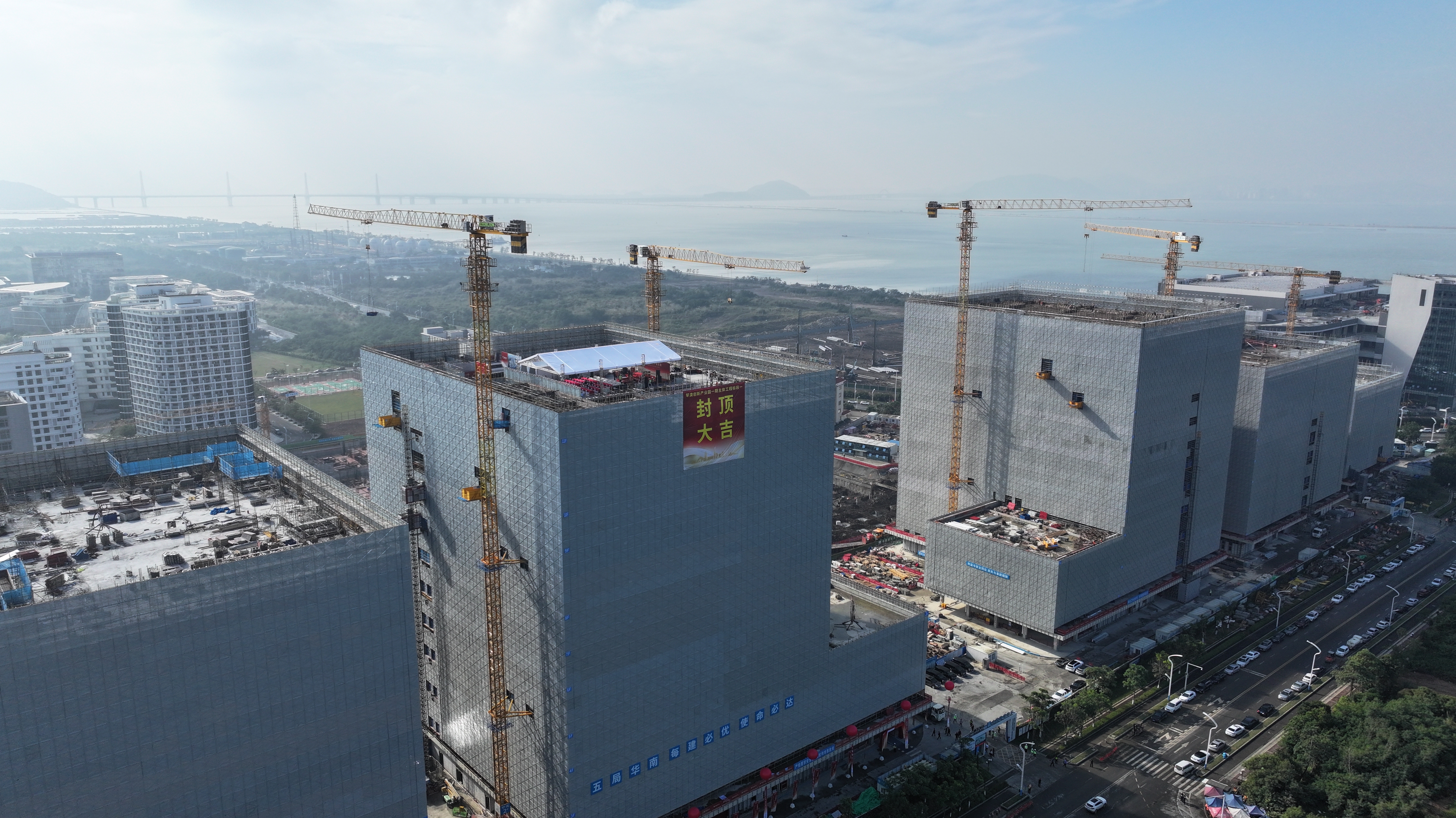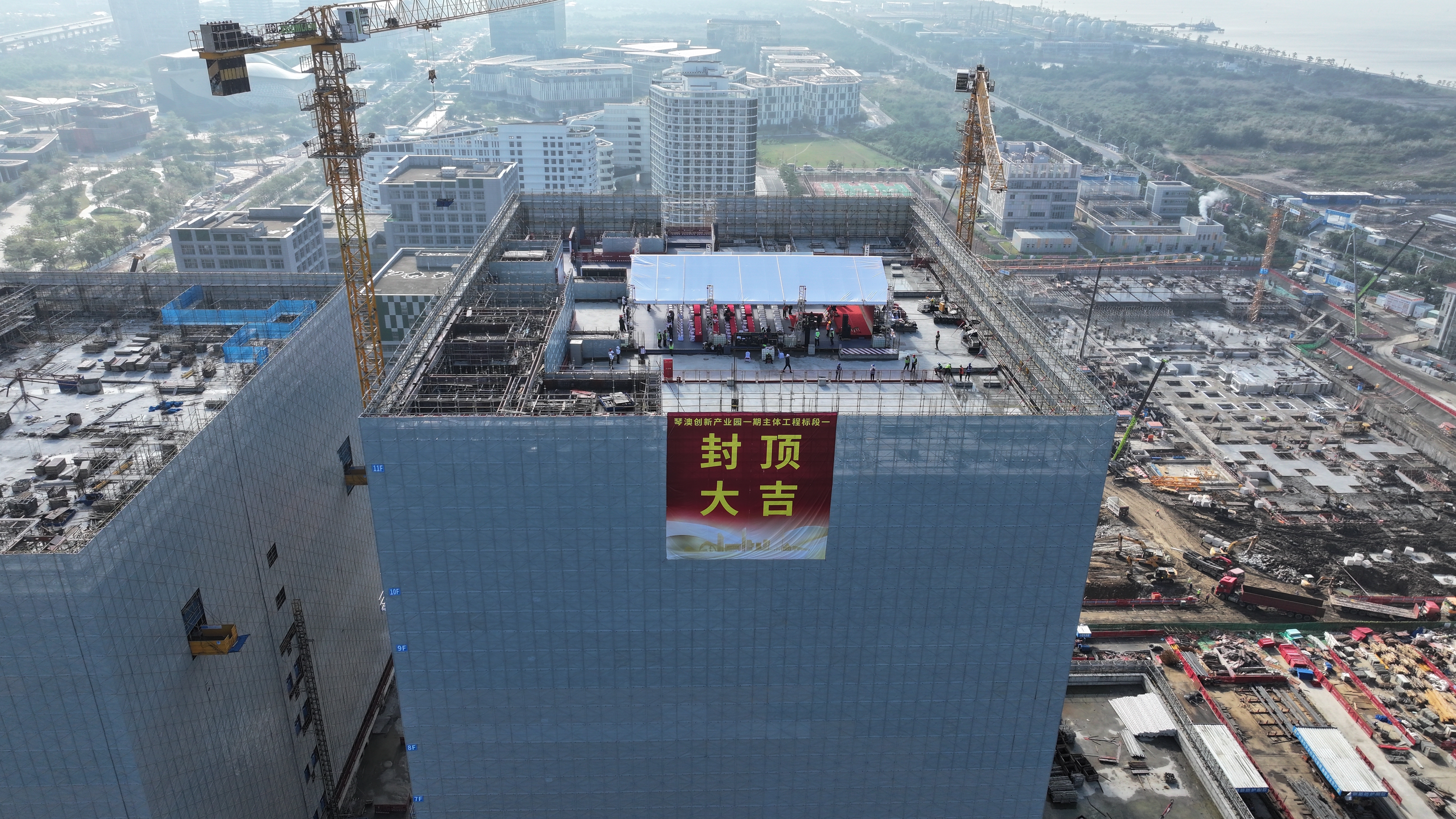 19日,琴澳创新产业园一标段工程正式封顶。