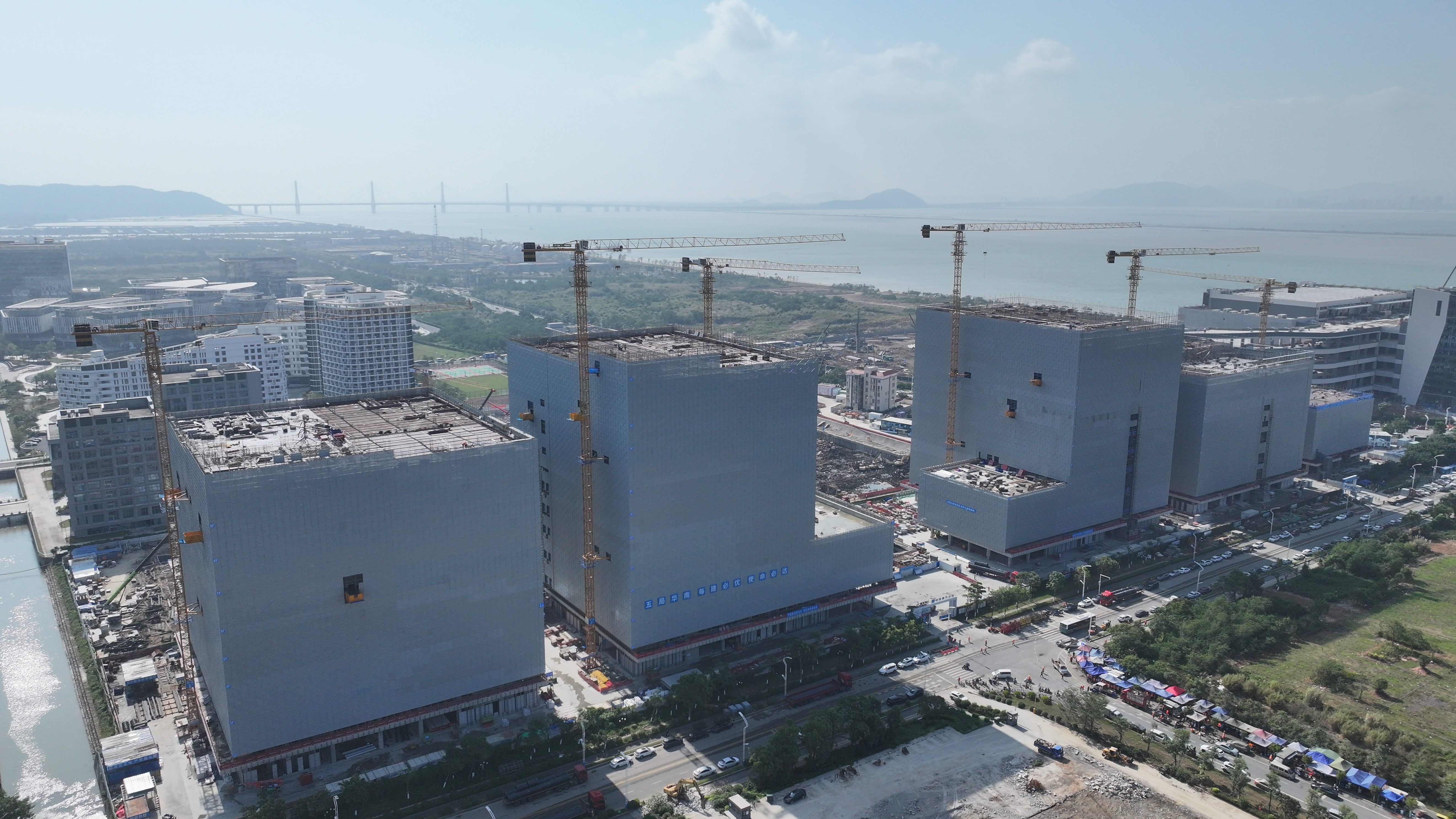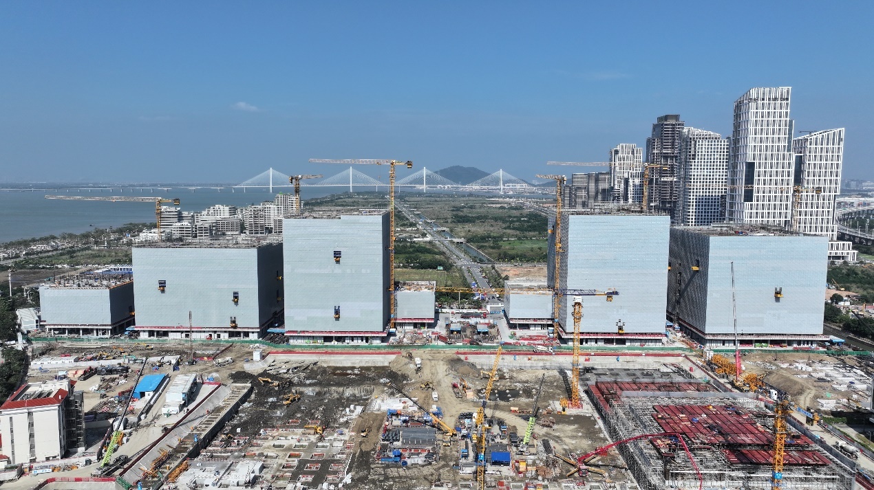 从高空俯瞰琴澳创新创业园一期项目的施工进展。