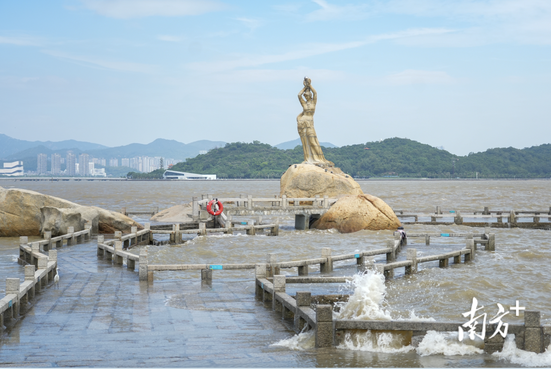 “她”是珠海渔女雕像。这座高8.7米、重10吨的花岗岩雕塑,从1982年矗立至今,流淌着咸涩的传说,低语着这座城市温柔而坚韧的浪漫。