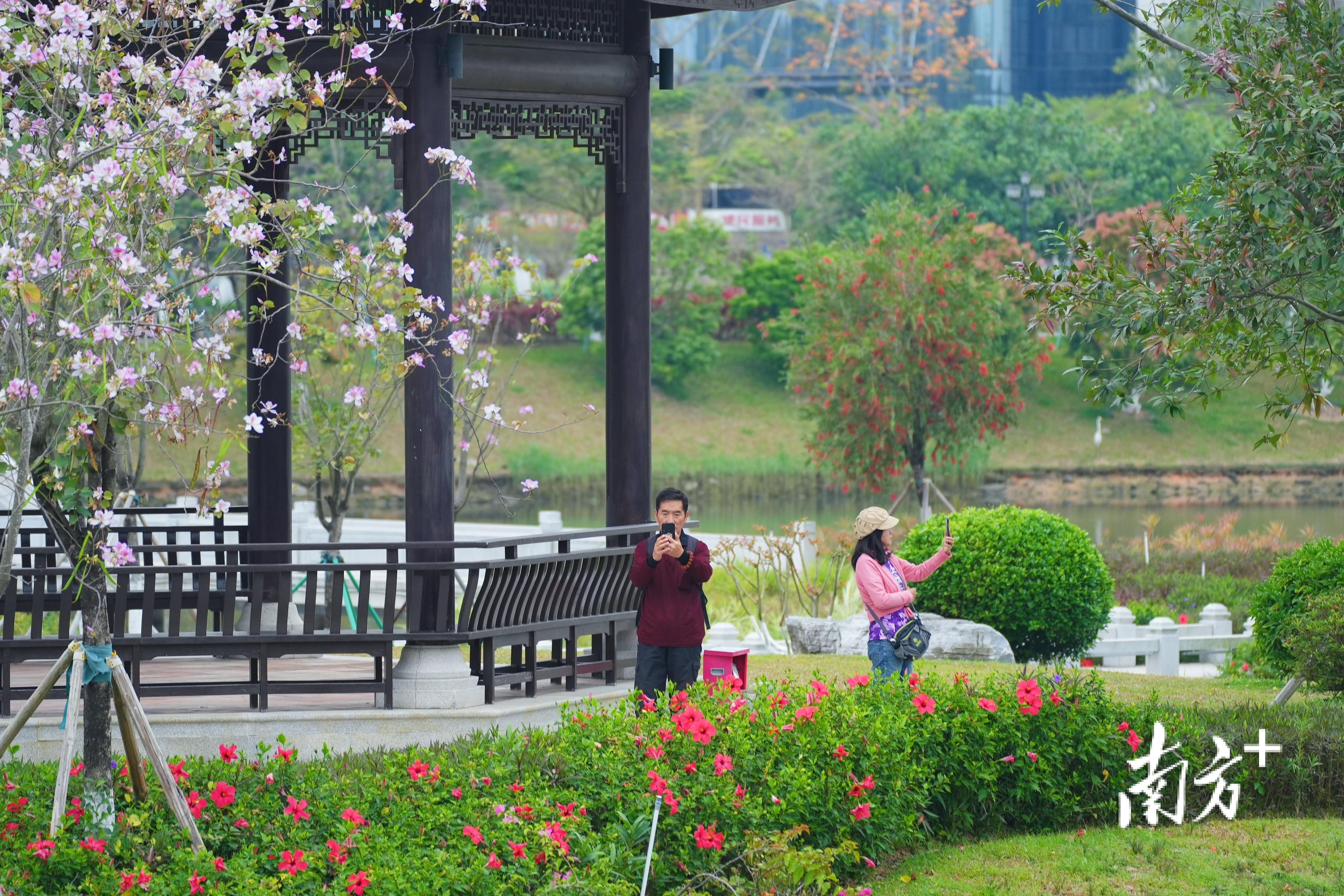 珠海中山公园里,游客们寻找最佳拍摄机位。 南方+ 钱文攀 拍摄