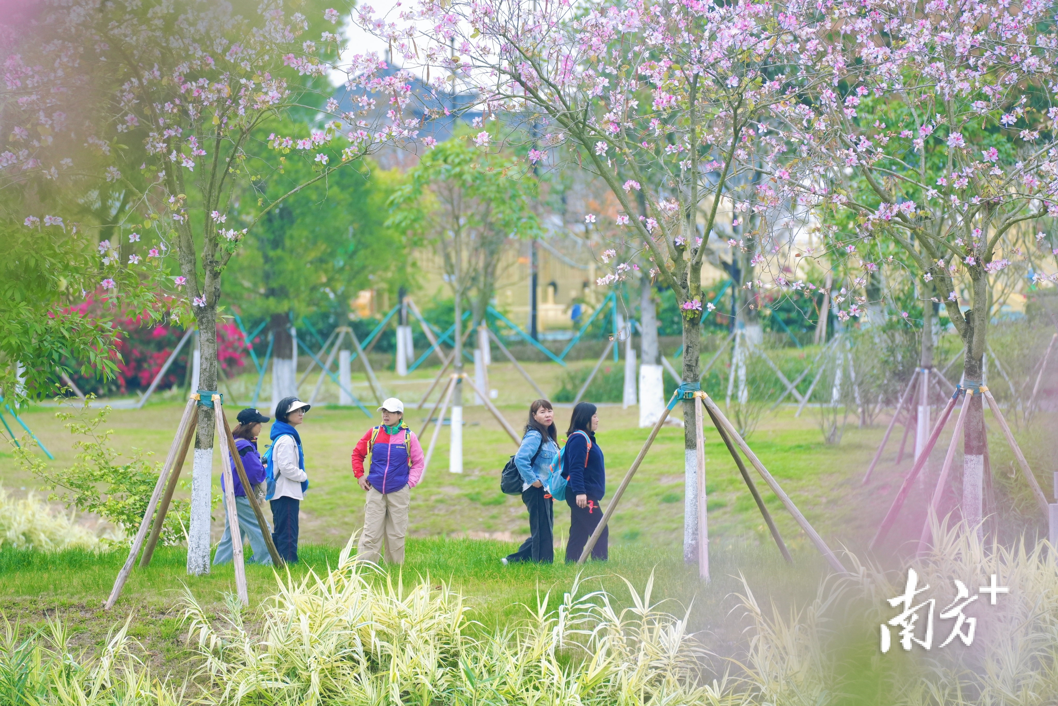 游客们三五成群漫步赏花。 南方+ 钱文攀 拍摄