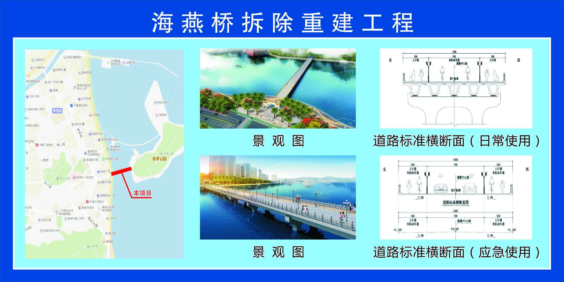 而此次新海燕桥建设工程就包括旧桥拆除、新建桥梁、桥头景观平台、连接道路、照明、绿化景观、临时用地后期建设及交通工程、管线工程等。