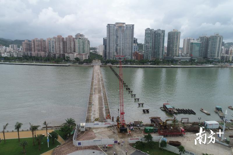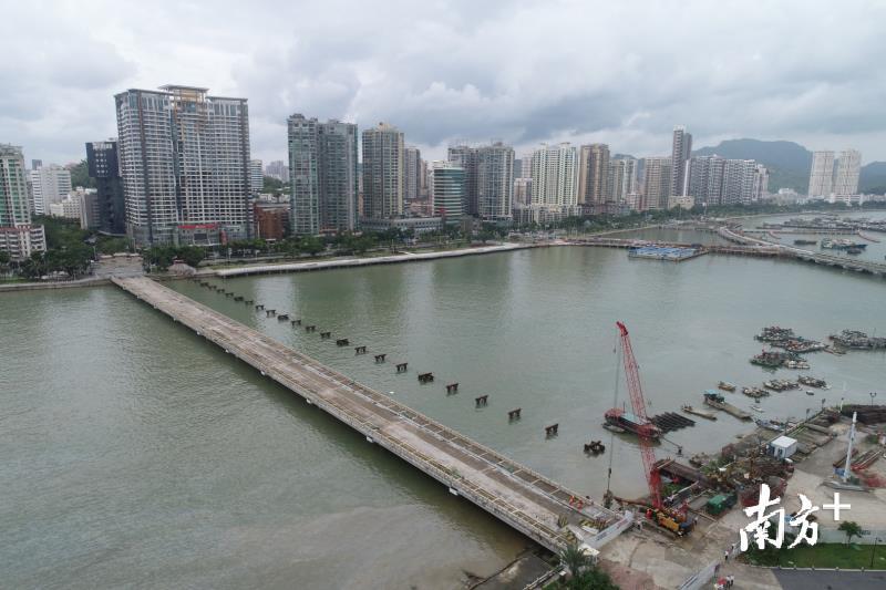 刚刚,记者从珠海市公路局召开的新闻发布会获悉,新海燕桥今天正式开工建设。施工栈桥开始搭建,旧桥拆除同步进行,预计将于2019年11月完工。