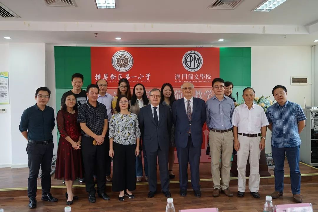 9月26日,珠海市横琴新区第一小学(以下简称“横琴一小”)与澳门葡文学校建立友好学校暨开展葡语教学合作签约仪式举行。南方+记者从签约仪式现场获悉,横琴一小自本学年起开设葡萄牙语选修课,由澳门葡文老师授课。