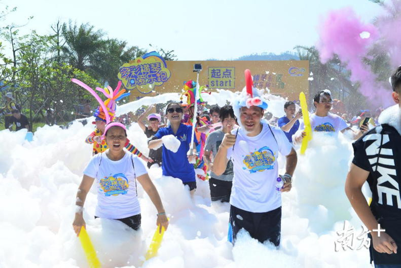 与其说是长跑,不如说,这是一场大型户外时尚派对。活动融合了泡泡跑、清凉跑、彩粉跑等多种时尚趣味元素,路线则串联起横琴花海长廊、忙洲湿地公园、星乐度露营乐园等多个旅游景区,享受运动欢乐的同时,横琴美景也尽收眼底。