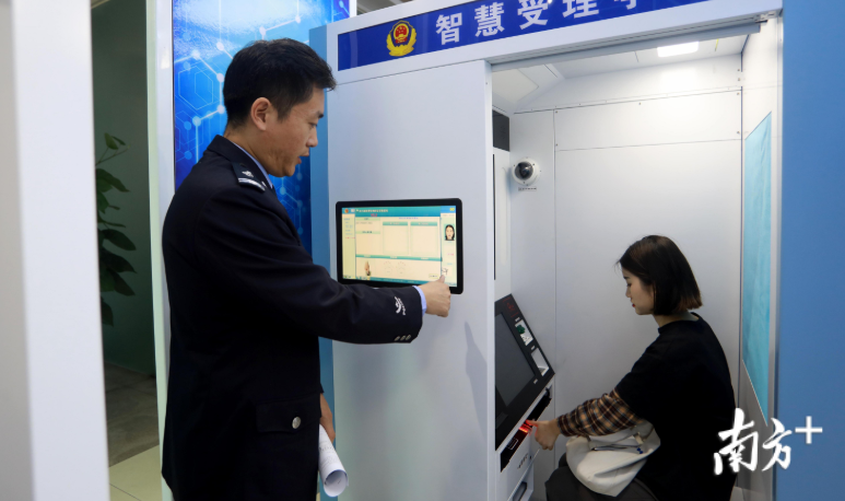 “此次智慧出入境办证大厅全面集成了出入境证件办理全流程的七大业务办理自助设备,可办理智能预约、智慧受理、智能引导、自助查询、自助查询、自助签注业务。”珠海市公安局出入境与外国人事物管理支队受理大队大队长陈迪介绍,智能受理亭是智能办证大厅的一大亮点,集受理面见、身份核验、拍照、指纹采集、缴费等功能于一体,把原本需要在多个环节才能完成的申请,集成到一台设备上一站式办结,同时可实现民警一对多的受理新模式,真正达到“便民利警”双赢目标。