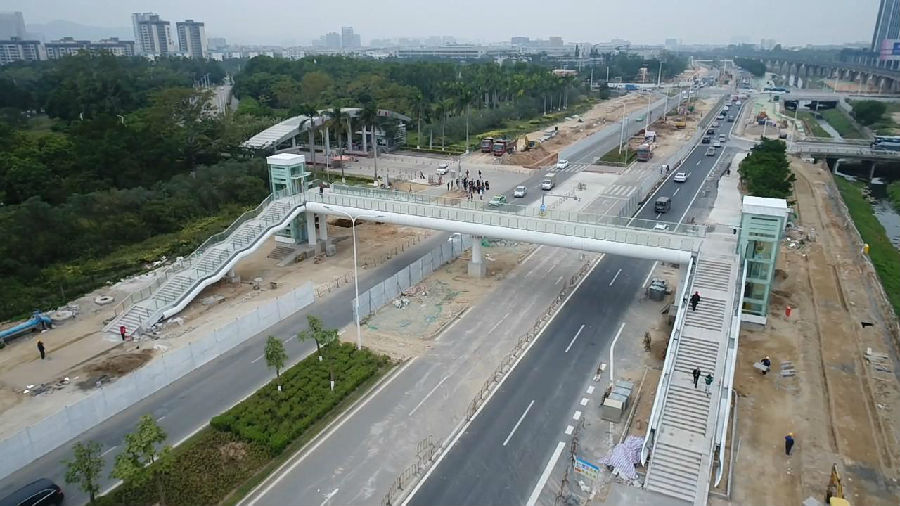 金琴快线工程(港湾大道至梅华立交)T1标段的1号、2号人行天桥被列为珠海市2018年十大民生工程。12月31日,该标段2座天桥顺利完工并投入使用。