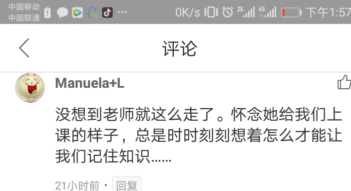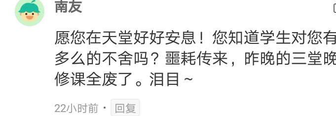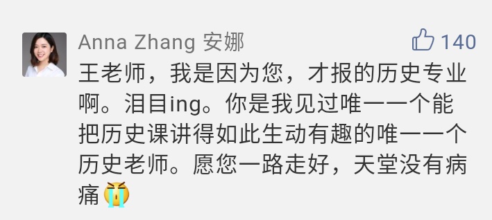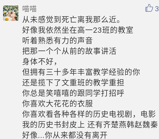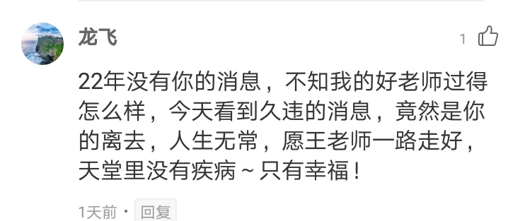 王老师在课上说的这些话,每每浮现在脑海中,廖同学都会莫名感伤,又是那么地怀念。“老师,您一路走好!谢谢,真的谢谢!”
