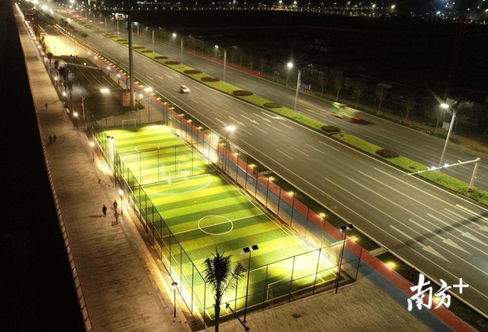 除亲子娱乐设施外,机场东路还有足球场、跑道等健身场所。到机场东路散步、健身悄然流行,打卡机场东路,已然成为周边市民娱乐健身的新时尚。