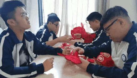 除了吟诗填词,喜沾“洋气”的元宵节特色课也大受欢迎。 “This is Chinese ‘fu’。Blessing!”当天,在珠海一中附属实验学校,包括8名外教在内1400多名师生以快闪的方式庆祝元宵节。