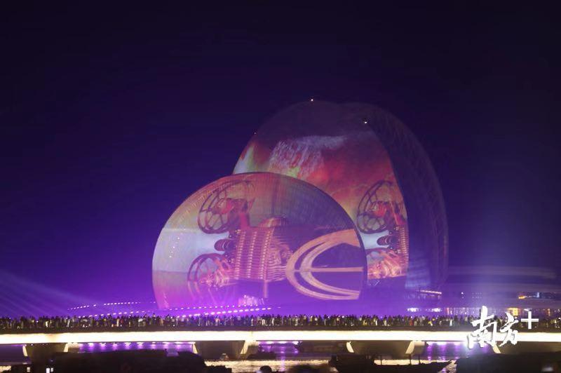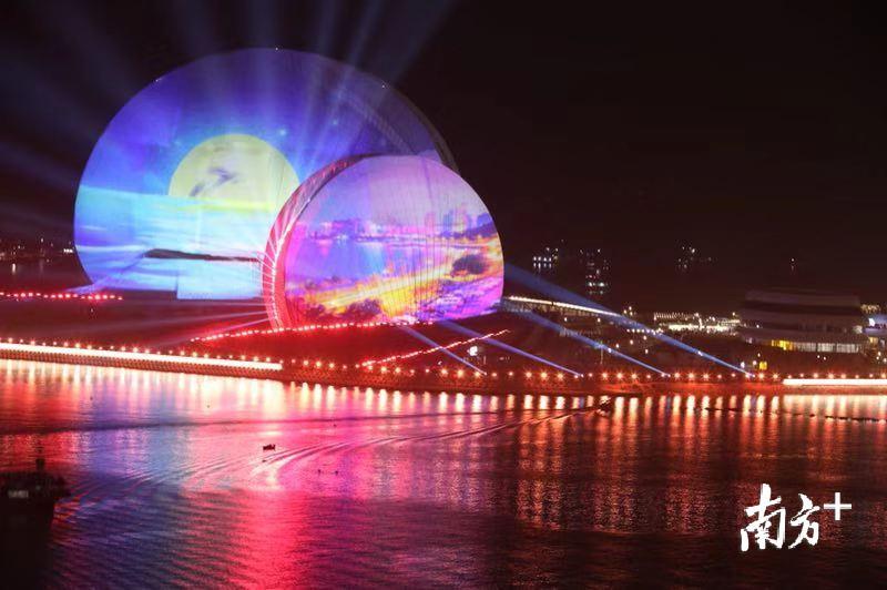 珠生于贝,贝生于海。此次光影焰火秀以珠海大剧院日月贝为主要对象,通过现代灯光投影技术,结合激光、焰火、无人机编队等元素,面向市民公开展演。