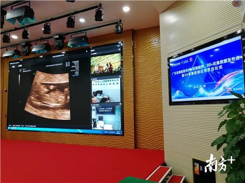 在广东省第二人民医院超声科远程诊断中心的大屏幕上,可以清晰地看到由珠海传过去的超声机器的屏幕、医生手部操作的特写等画面。