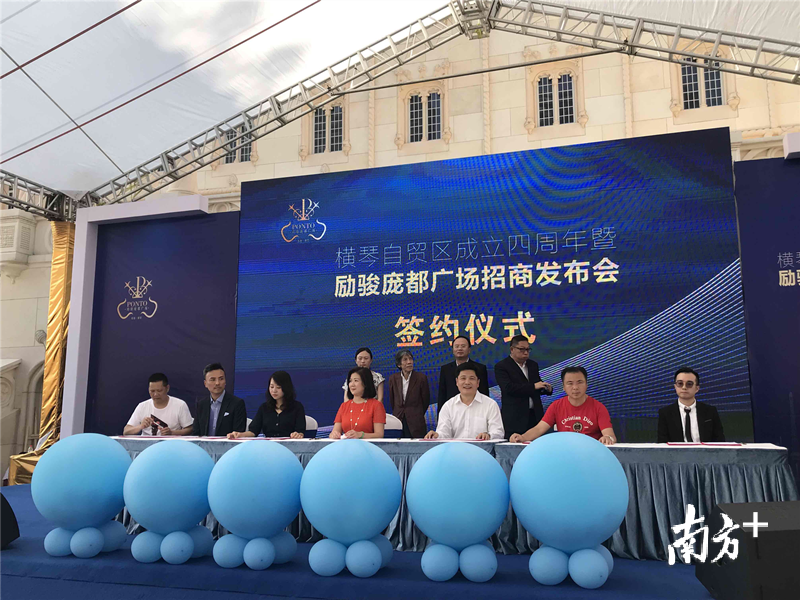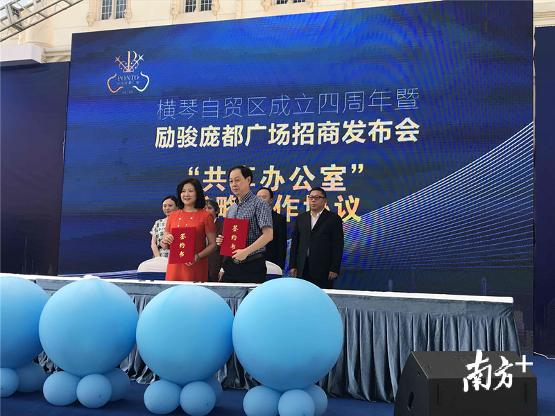 活动在励骏项目中心广场举行,项目开发商珠海市横琴新区励盈房地产开发有限公司董事长周锦辉与横琴金投创业谷孵化器管理有限公司总经理徐牧签署了“共享办公室”战略合作意向协议,计划打造澳门青年和澳门中小企业文旅会展创业空间,并与进驻品牌包括中影影院投资公司、琴澳武术文体健身馆、水上宫葡国餐、珠海尼维国际贸易有限公司、米芝莲星级餐厅、麻辣英雄等进驻项目签约。