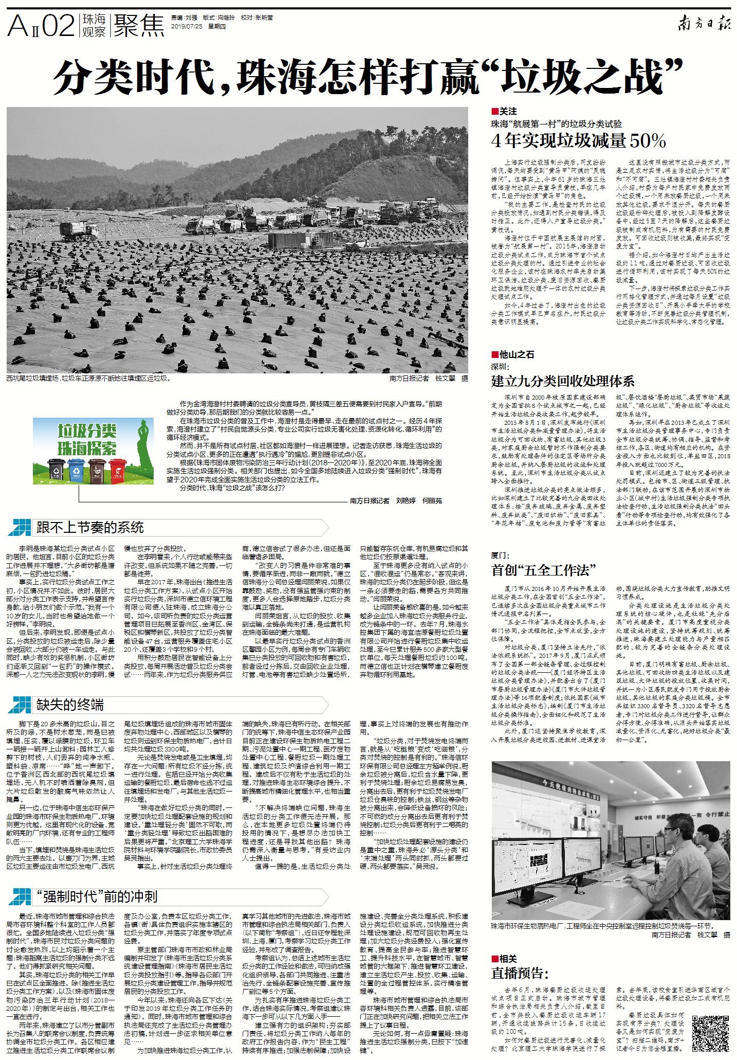 “加快垃圾处理配套设施的建设仍是重中之重,珠海务必‘源头分类’和‘末端处理’两头同时抓,两头都要过硬,两头都要落实。”吴灵说。